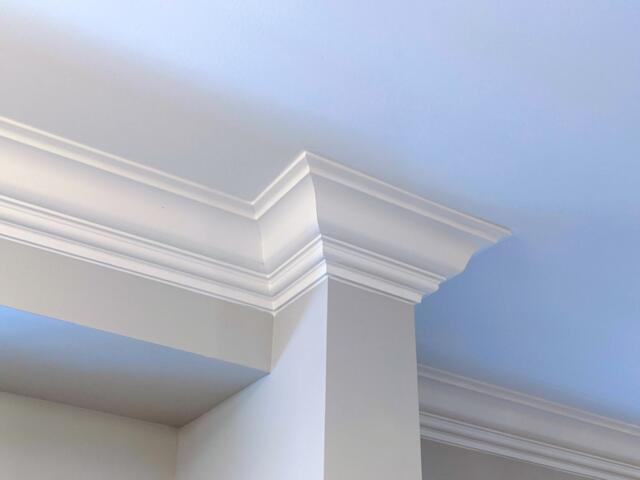 Crown moulding can be painted in any colour. The MDF crown moulding we use comes with a white primer finish. Upon request, we can also prepare crown moulding to be painted filling any nail holes, corners, caulking seams, and gaps. As a result, after we finish the installation, you can paint it in any colour to suit the room’s interior.
